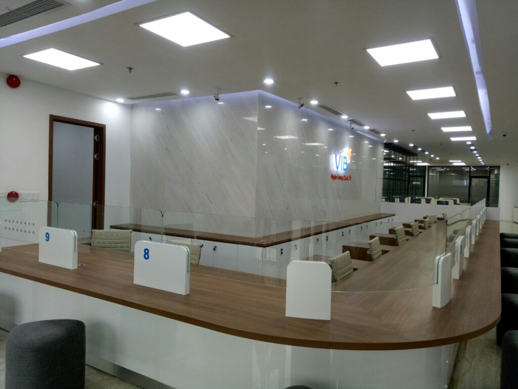 Với kinh nghiệm 10 năm trong ngành thi công, I.F.D Group luôn nhận được sự tin tưởng và trở thành đối tác thi công tin cậy của các hệ thống ngân hàng như VIB, BIDV và OCB… Những công trình thi công nội thất ngân hàng được I.F.D Group thực hiện bao gồm: VIB – Tây Ninh, BIDV – Lý Thường Kiệt, Việt Á Bank Hà Nội, PV Combank Hà Nội, Hội sở BIDV – Đặng Văn Bi…