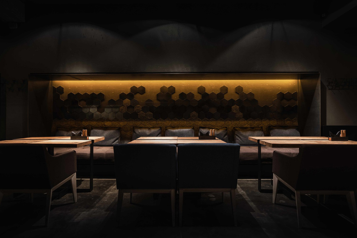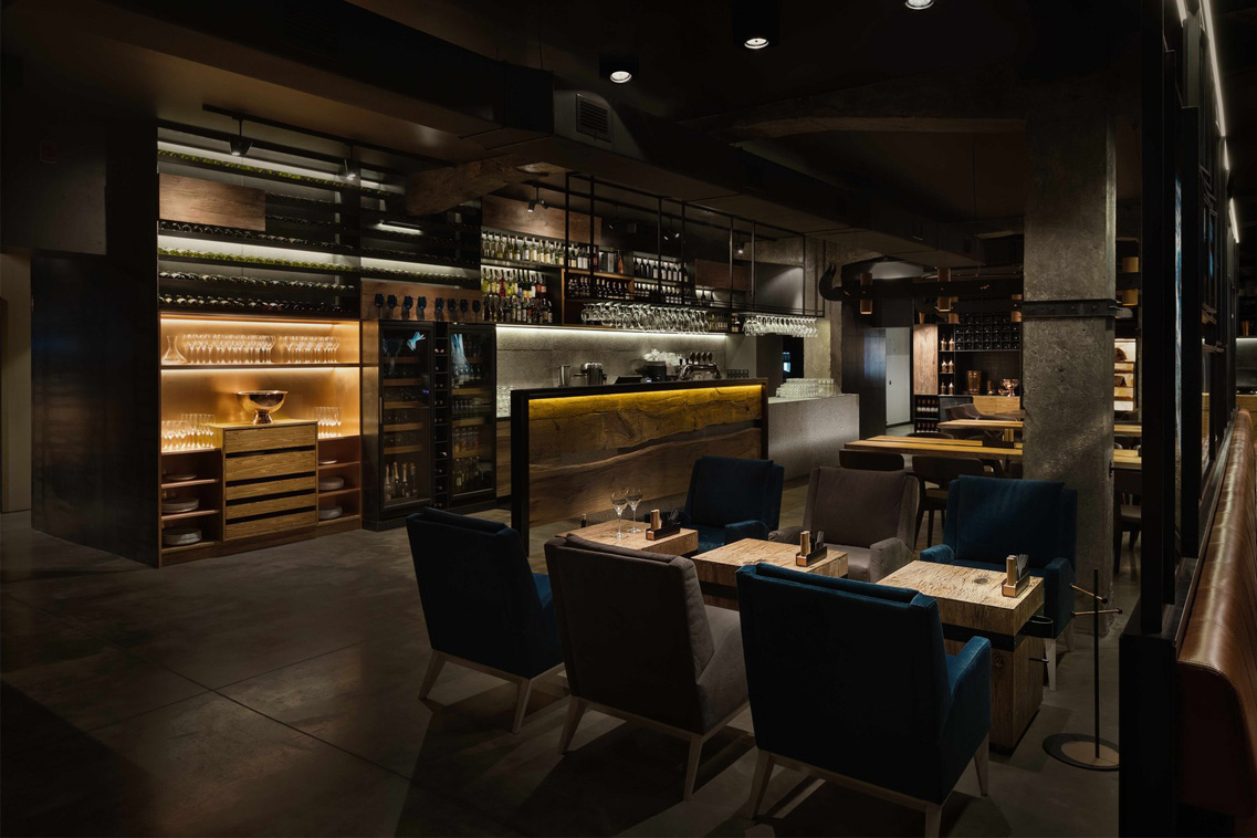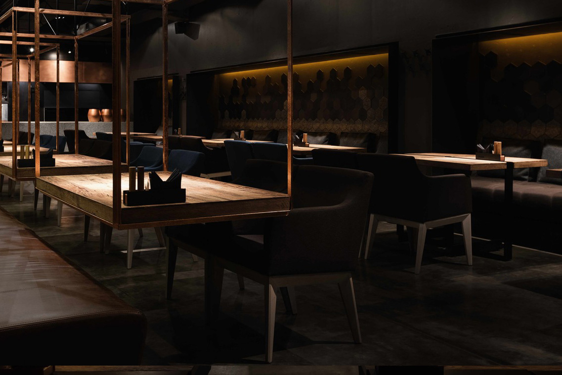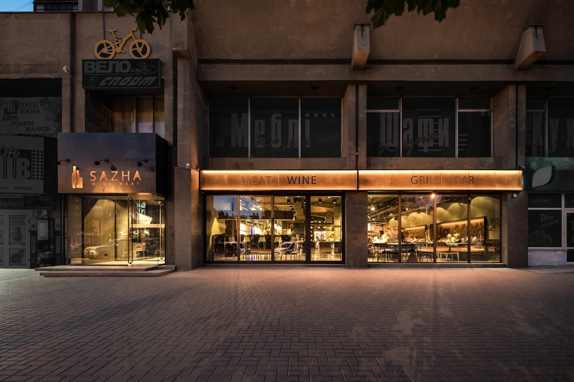 Sazha – là một nhà hàng chuyên về bít tết. Tổng quan Kiến trúc nhà hàng tương tự như Kiến trúc của đường phố nơi nó tọa lạc, là một ví dụ về chủ nghĩa kiến tạo của Liên Xô. Nội thất của nhà hàng chủ yếu theo tông màu đen và xám tô điểm những đốm màu đồng sáng trong trang trí và màu xanh trong đồ nội thất. Trong thiết kế này cũng sử dụng các vật liệu đã trải qua xử lý nhiệt như đá granit và cây sồi khô; kim loại cán nóng có vảy,…