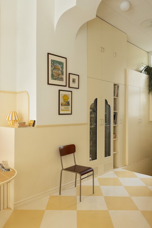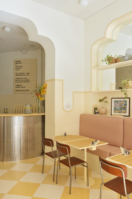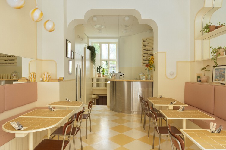 Quán cafe Banacado nằm trong khu vực sôi động của Vasastan, Stockholm, với diện tích 70m2, được hoàn thành năm 2021. Đây là quán cafe được xây dựng theo phong cách thơ mộng với thức ăn đầy hương vị ngọt ngào hòa quyện tự nhiên với không gian nhẹ nhàng của quán. Nhà thiết kế tăng thêm sự rung cảm bằng các kệ, mái vòm, và sàn, bàn cờ theo thẩm mỹ của Cuba. Không gian quán được phủ bởi màu vàng nhạ làm bạn như trở về với những bộ phim cũ. Để tăng thêm bầu không khí siêu thực các Kiến trúc sư còn sử dụng các cảm hứng từ ngành công nghiệp điện ảnh.