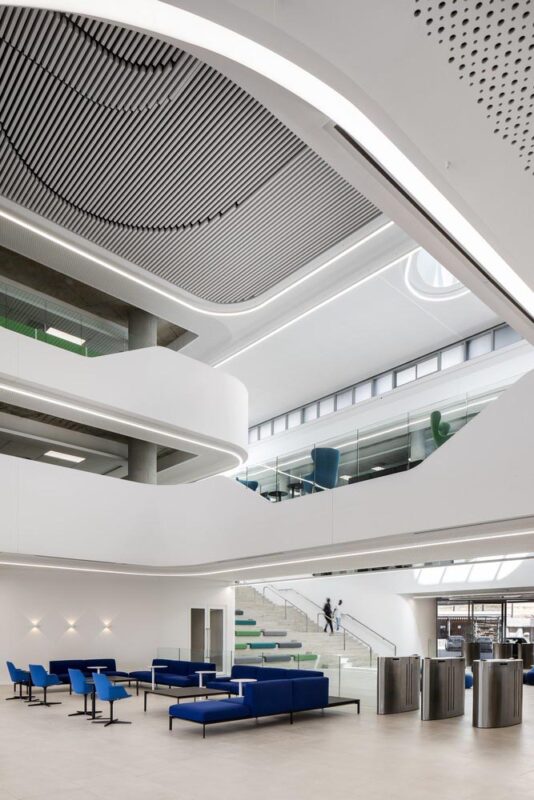 là một trong những ngân hàng lớn và tiến bộ nhất ở Châu Phi, đã chuyển đến trụ sở mới đầy sáng tạo của mình, iKhaya, có nghĩa là “nhà” ở Xhosa. Với không gian rộng lớn gấp ba lần thể hiện sự tinh tế và đơn giản của kiến trúc nội thất được bày trí. Các tấm sàn có không gian mở rộng chạy vòng quanh ngoại vi của giếng trời được kết nối bằng một loạt các cầu thang ấn tượng. Đây là một yếu tố thiết kế có chủ đích giúp kết nối giữa các bộ phận khác nhau, tạo cơ hội cho các cuộc gặp gỡ và tương tác cá nhân nhiều hơn.