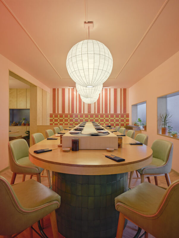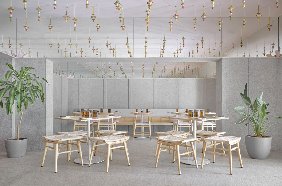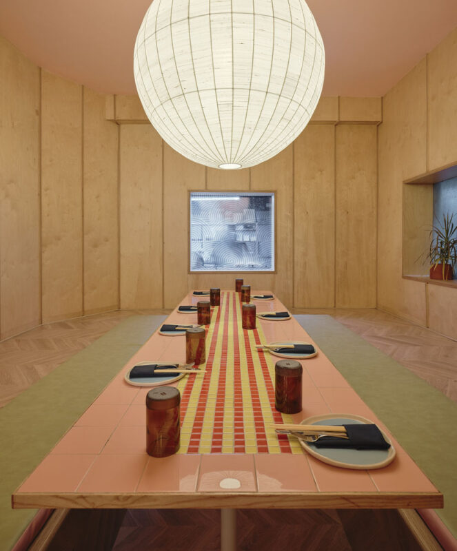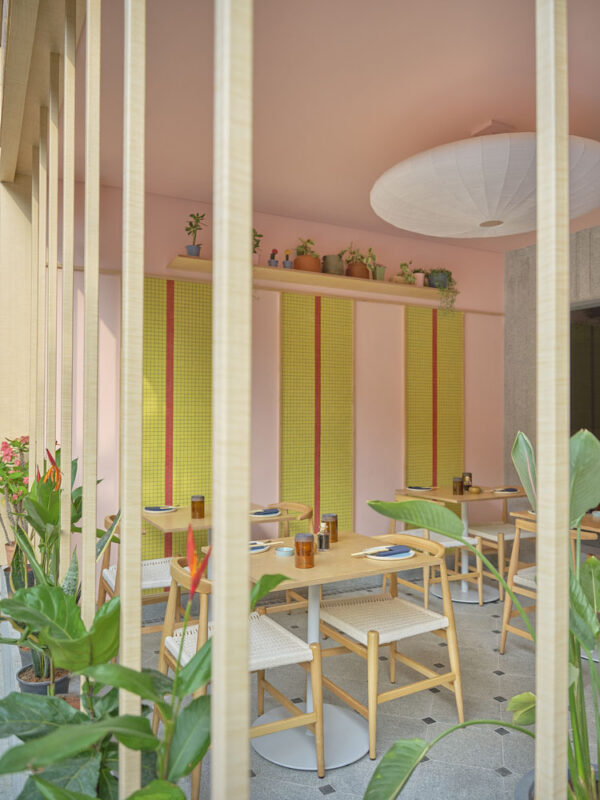 Nhà hàng tạo ra sự khác biệt với việc sử dụng các vật liệu và sản phẩm thủ công mỹ nghệ tại địa phương để trang trí trong bối cảnh đương đại. Đá granit được sử dụng nhiều trên các bức tường và sàn của nhà hàng để tạo ra một phông nền tinh tế. Gạch mosaic có hoa văn màu đỏ, xanh lá cây và vàng nổi bật khi được kết hợp với đá và gỗ. Điểm nhấn với màu hồng pastel và xanh lá cây được sử dụng để gắn kết nhau và thêm sự trẻ trung / góc cạnh cần thiết để biến đây trở thành một nhà hàng bình dân nhưng hợp thời trang.