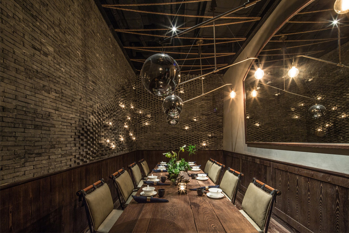Khách hàng sẽ bị cuốn hút bởi thiết kế ở phòng ăn chính với đèn chùm xâu bằng kim loại còn có các tấm thép ở trên cao làm cho không gian trần được mở rộng. Ở khu vực Bar & Lounge, các tán cây treo được làm bằng hai lớp hàng trăm sợi cáp đồng kéo dài được tích hợp với đèn treo trên cơ chế ròng rọc. Cấu trúc ấn tượng tạo nên khung cảnh và thúc đẩy không gian của khu vực quầy bar chính.