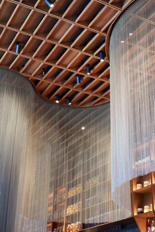 Qualia được coi là sân khấu của nghệ thuật nấu ăn. Nhà hàng được thiết kế để nâng cao chất lượng trải nghiệm ăn uống, từ hương vị và mùi thơm của thực phẩm đến kỹ thuật nấu nướng điêu luyện khi các đầu bếp tạo ra từng món ăn. Nhà bếp được mở ra ngay khu vực tiếp khách chính, cho phép thực khách chứng kiến tất cả các công đoạn chế biến món ăn. Nhà hàng với ba phần bao gồm: Khu vực nấu ăn chính bao gồm lò sưởi và lò nướng bánh pizza; khu tráng miệng và làm bánh.