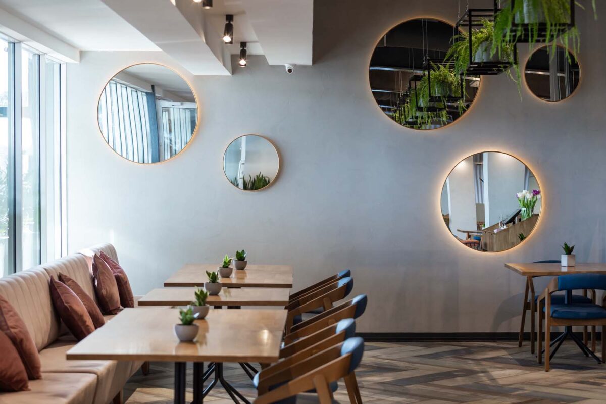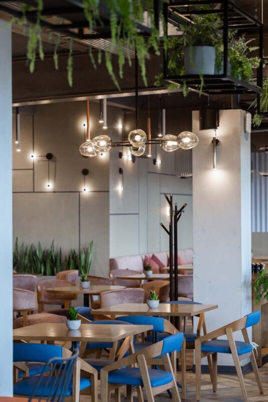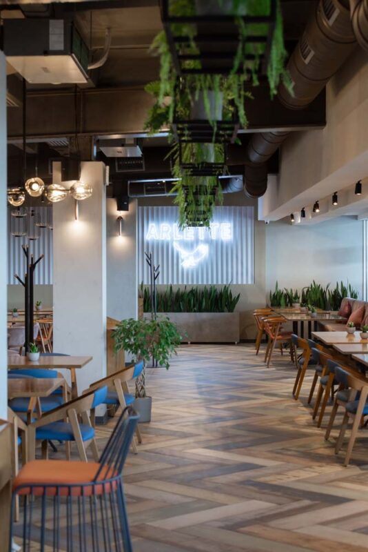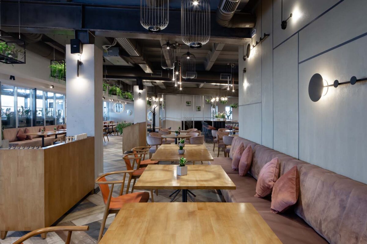 Với số chỗ ngồi trong sảnh chính là 65, trên khu vực sân thượng là 65. Tổng diện tích của cơ sở là 600 m2. Không gian mở đã hình thành cơ sở để quy hoạch sơ đồ bàn và di chuyển của khách bên trong nhà hàng. Các vật liệu được sử dụng trong khi thiết kế không gian tạo cho du khách cảm giác thoải mái và gây hứng thú với cả người lớn và trẻ nhỏ.