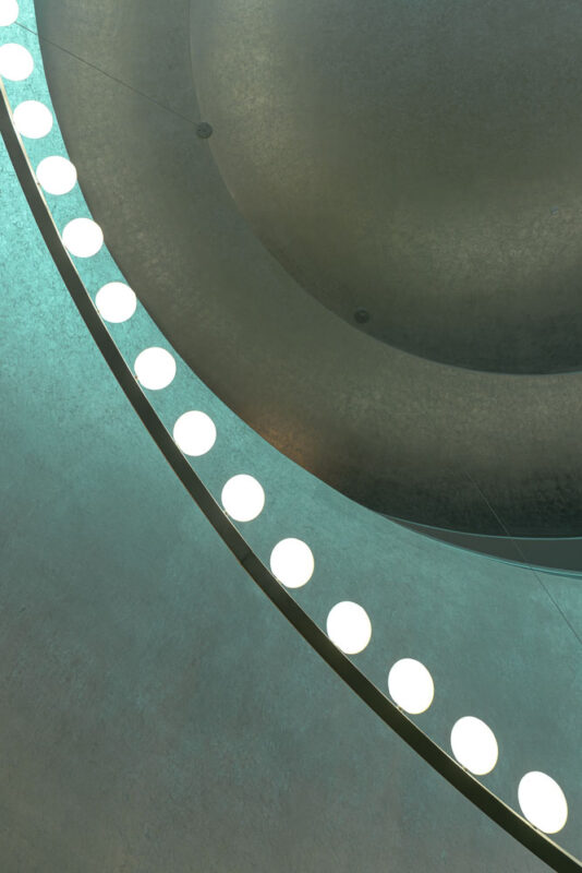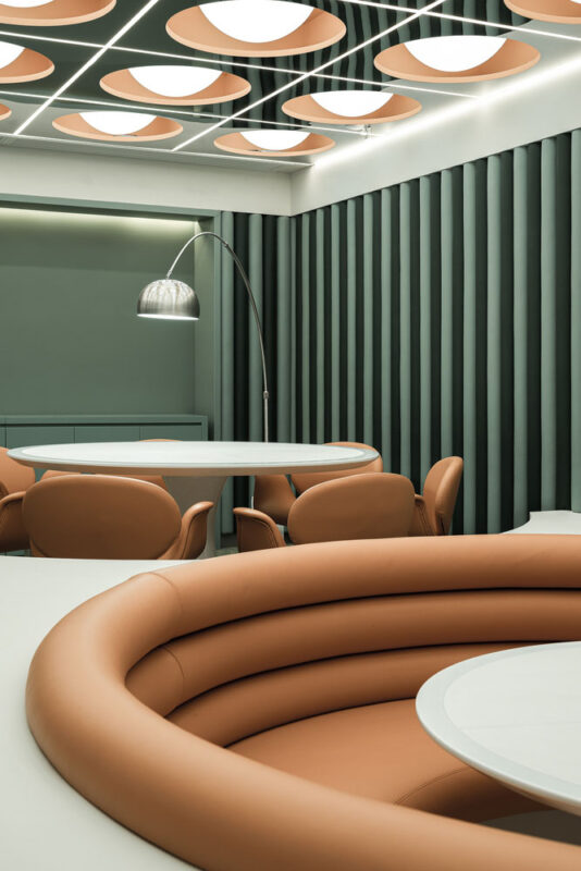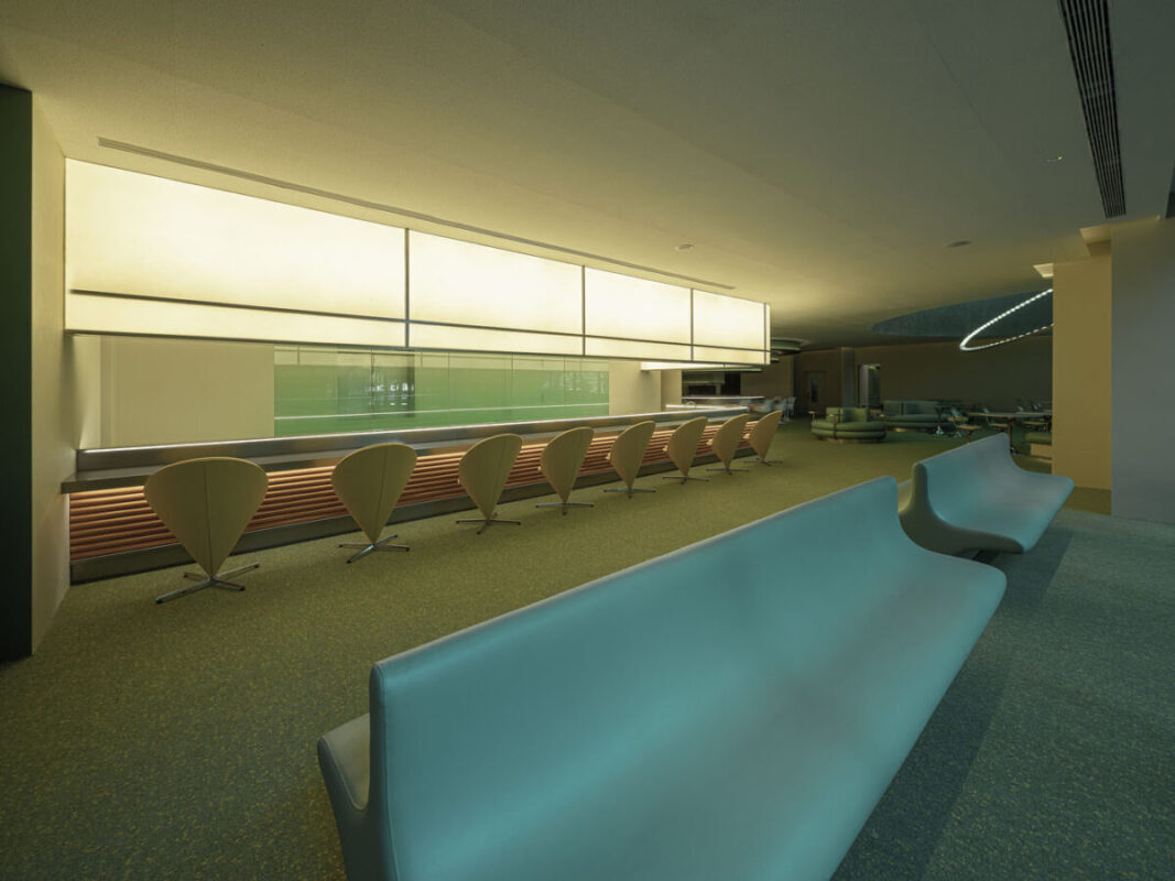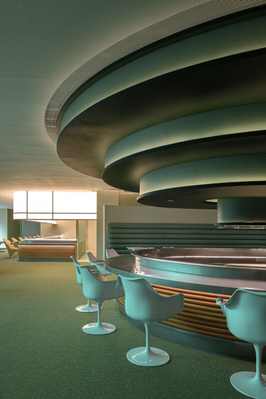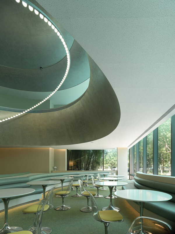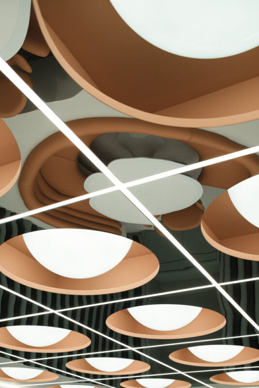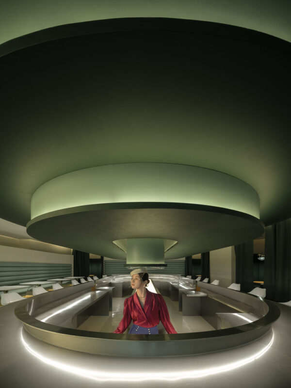 Khi tiếp cận dự án, đơn vị thiết kế đã sử dụng các yếu tố thường gắn liền với trí tưởng tượng của con người hiện đại về tương lai như hình tròn, đường cong, trần mái vòm, để tạo ra những khung cảnh và bầu không khí “tương lai” trực quan hơn trong không gian.