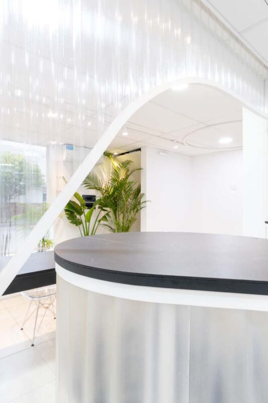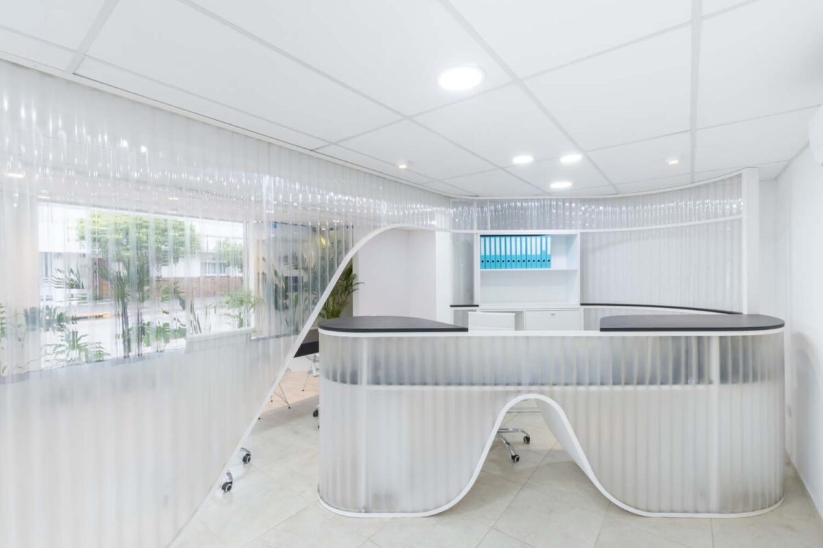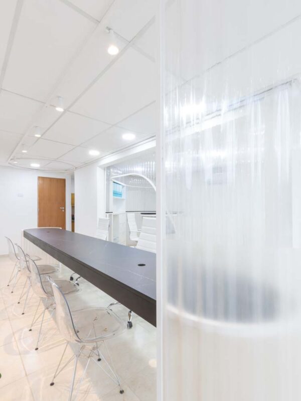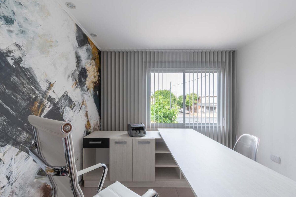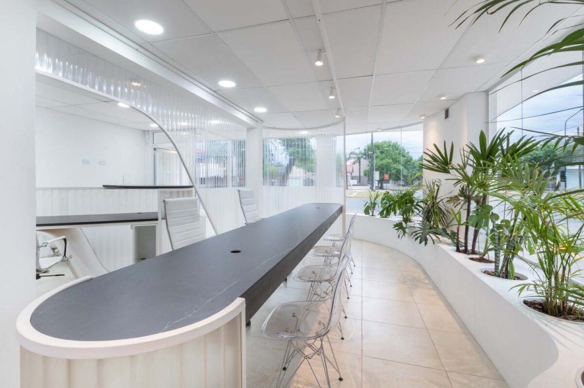 Với mục tiêu tạo ra không gian để thực hiện các hoạt động như hội họp, dịch vụ khách hàng, các công việc và thủ tục hành chính. Đèn chiếu sáng bên ngoài được sử dụng liên tục và trở thành “đèn bảng hiệu” vào ban đêm. Phía ngoài cũng phải được thiết kế sao cho ấn tượng với người đi đường vì văn phòng nằm ngay ở góc được có 2 mặt tiền.