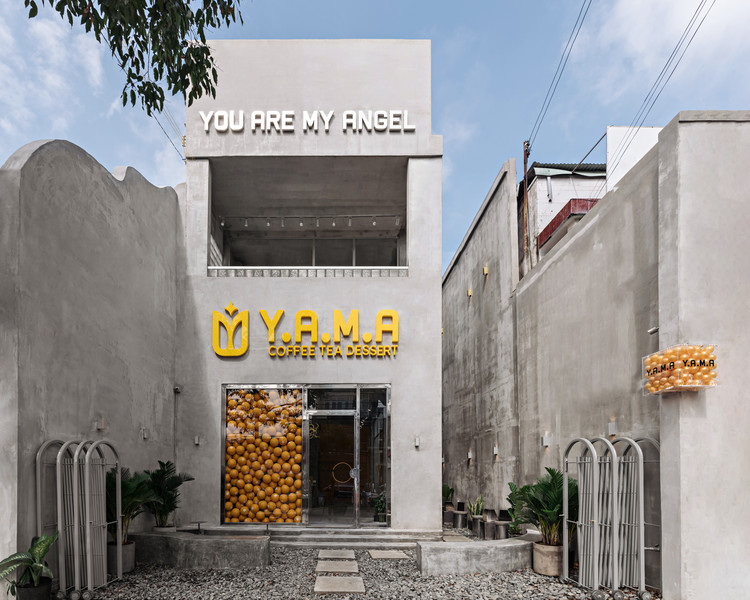 Quán cà phê với tư tưởng thiết kế thương hiệu YAMA – YOU ARE MY ANGEL, sử dụng gam màu xám xi măng thể hiện ý tưởng đô thị hóa, và màu vàng màu của xu hướng thịnh hành của năm 2021, và là màu của thương hiệu.
