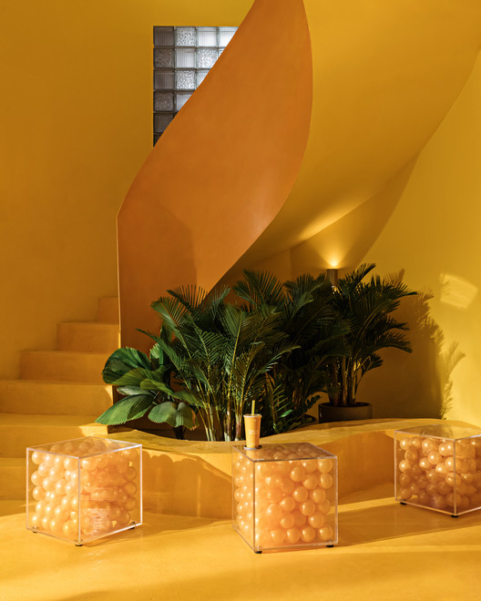 Sử dụng chủ yếu các vật liệu là xi măng, bê tông, và thép không gỉ. Nhưng nhà thiết kế đã làm nổi bật khu vực quầy bar đối với bất kỳ ai đặt chân vào quán.