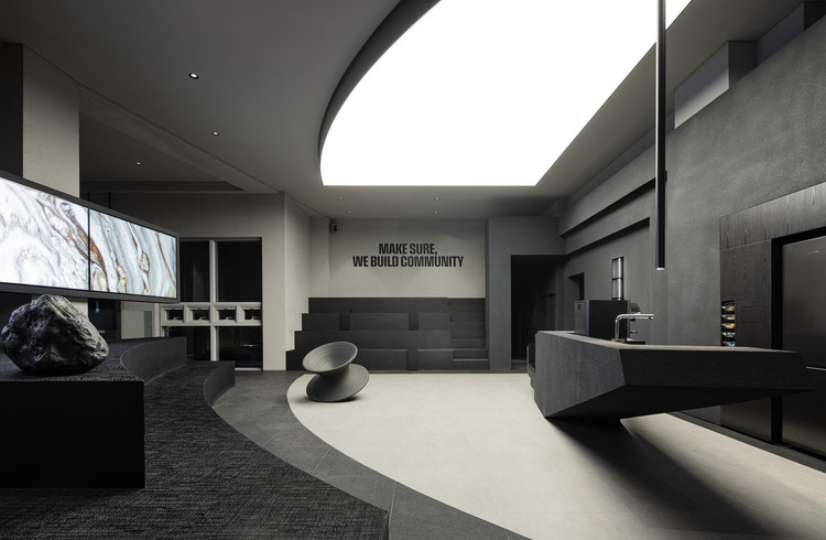 Văn phòng được thiết kế với khái niệm MÀU ĐEN PHẢI LÀ ĐEN MỚI. Nó bao gồm một không gian trung tính và mạnh mẽ, sử dụng màu ĐEN và XÁM. Không gian được phân chia theo chiều ngang được tạo ra để kết nối với nhau bằng vật liệu gọi là cầu thang. Cảm giác về hình dạng được tạo ra bởi cầu thang kết nối toàn bộ không gian theo chiều ngang và chiều dọc bằng cách kết nối từ sàn đến tường và tường này sang sàn khác.