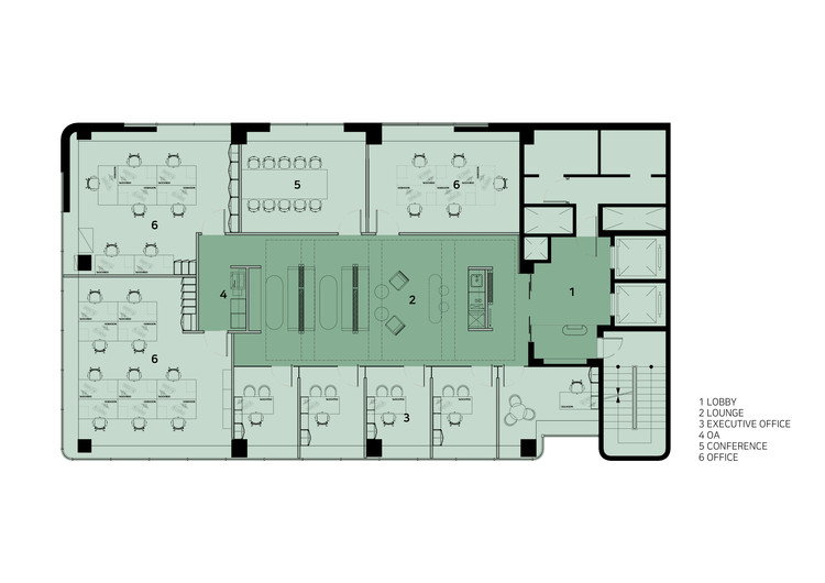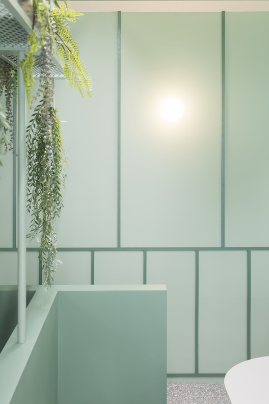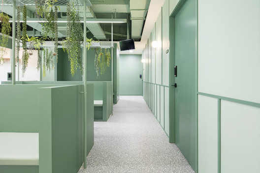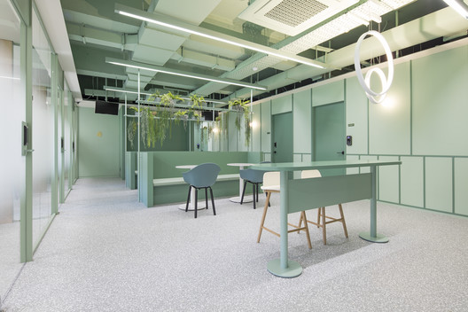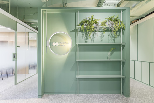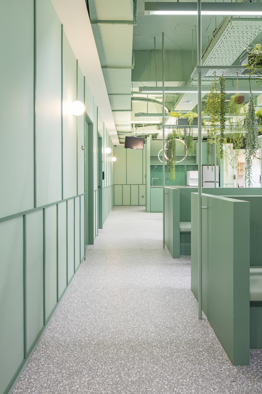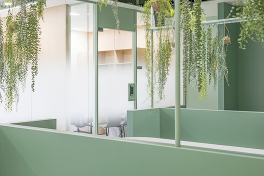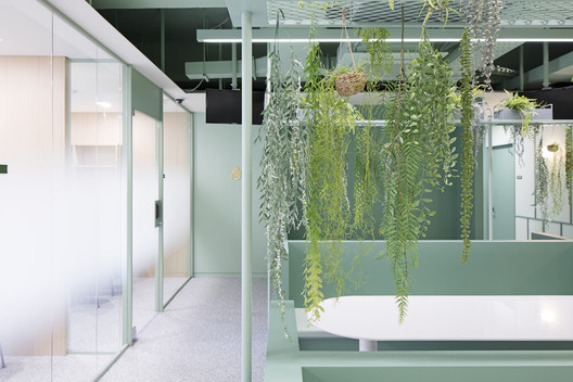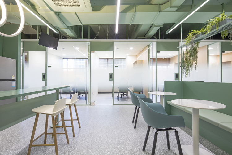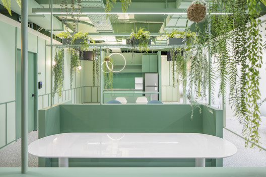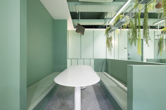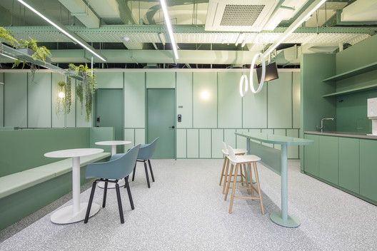 Với khách hàng là công ty nghiên cứu về thực phẩm tự nhiên và sức khỏe. Kiến trúc sư đã sử dụng màu xanh lá là màu chủ đạo và các khuôn tường được sử dụng nhằm tránh cho sự đơn điệu trong thiết kế. Khu vực sảnh trung tâm là một căn tin đơn giản, cũng như chỗ nghỉ ngơi cho nhân viên. Cùng IFD group xem thêm các hình ảnh về thiết kế văn phòng tinh tế này nhé.