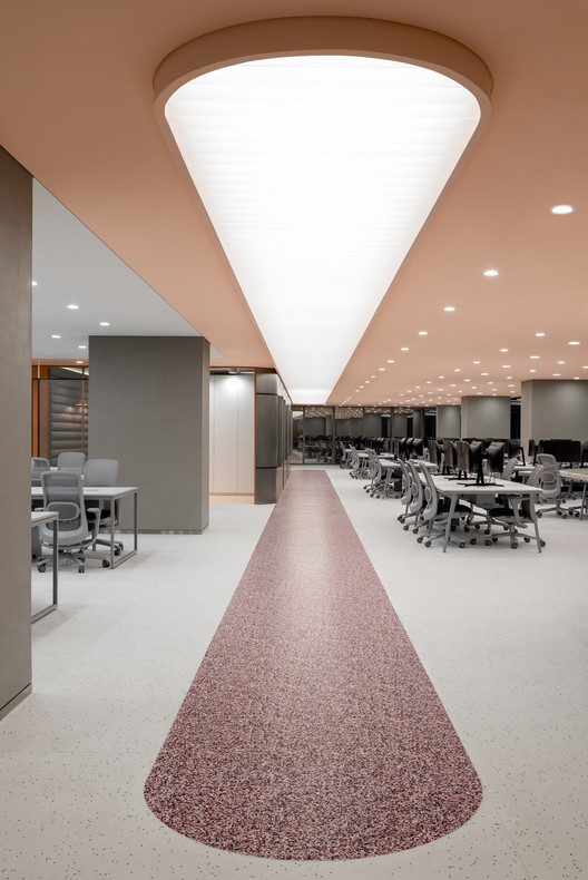 Các mô hình này tạo sự riêng tư và thoáng tầm mắt hơn. Ngoài ra xung quanh trung tâm tòa nhà, một loạt phòng họp, phòng chức năng được bao bọc trong lớp kim loại màu san hô.